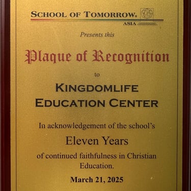 On March 20-21, 2025, the Far East ACE Educators’ Convention was held in Bangkok. The entire team of Kingdom Life Education Center (KLEC) attended the conference. The organizers presented KLEC with a certificate of recognition for its 11th anniversary.